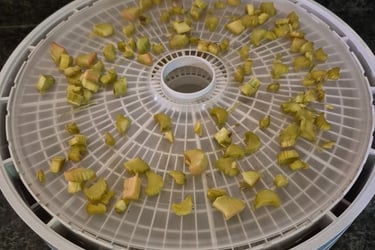 If using a dehydrator (I have one like this and really like it), lay rhubarb pieces in a single layer on the dehydrator trays. Make sure none are touching. Set to 135 degrees Fahrenheit. Dry for 8-12 hours. Start checking at the 8 hour mark.